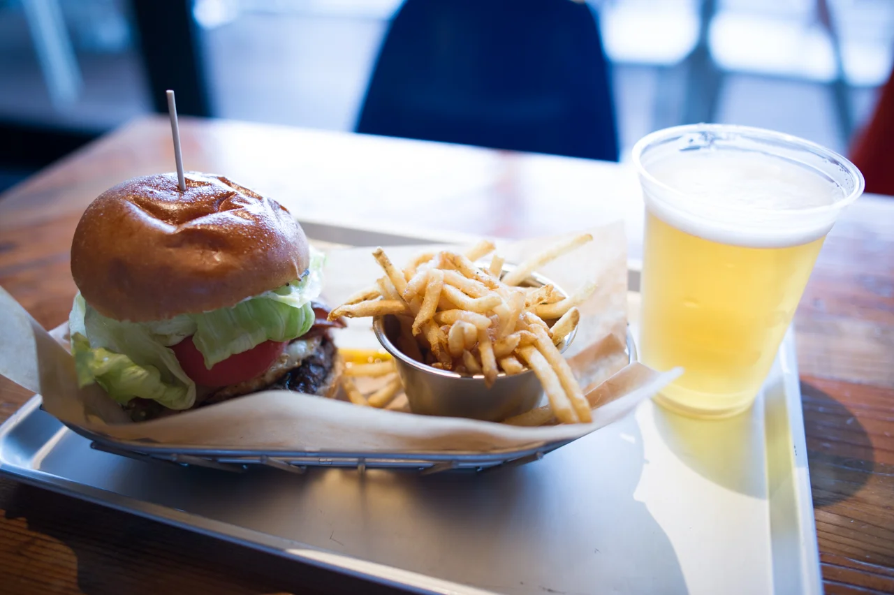 뉴욕에서 처럼 주식은 언제나 햄버거. 다만 바뀐게 있다면 콜라에서 맥주.