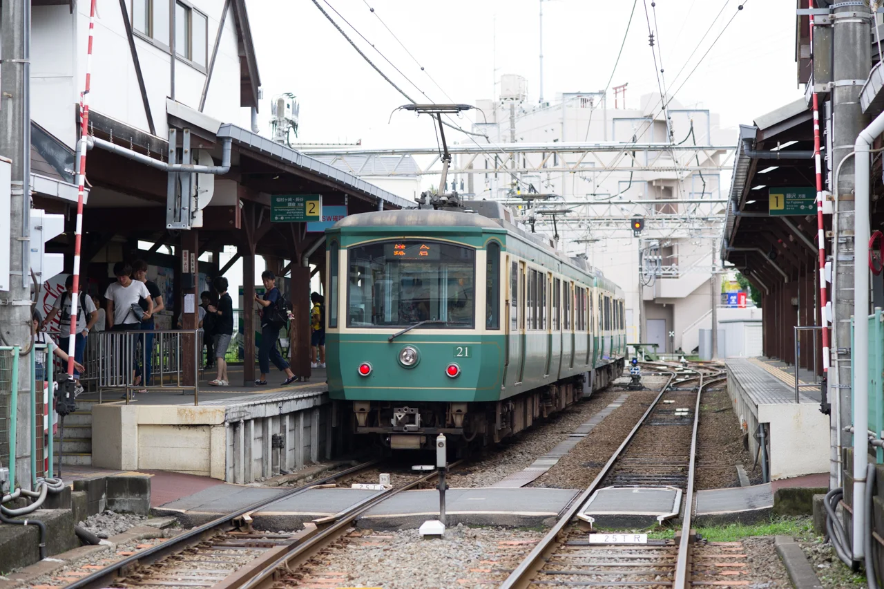 가마쿠라 고교역에 도착. 에노덴은 복선철도보다 조용한 동네에 맞게 단선이 운치있게 잘 어울린다.